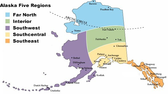 Following is a map of Alaska showing its five distinct regions. Included are the Seattle facility addresses, bill of lading information, corresponding transit available, and major communities in each region.